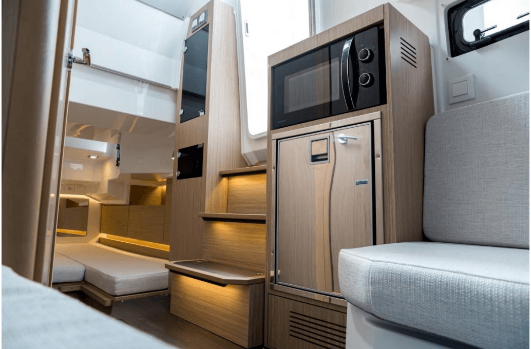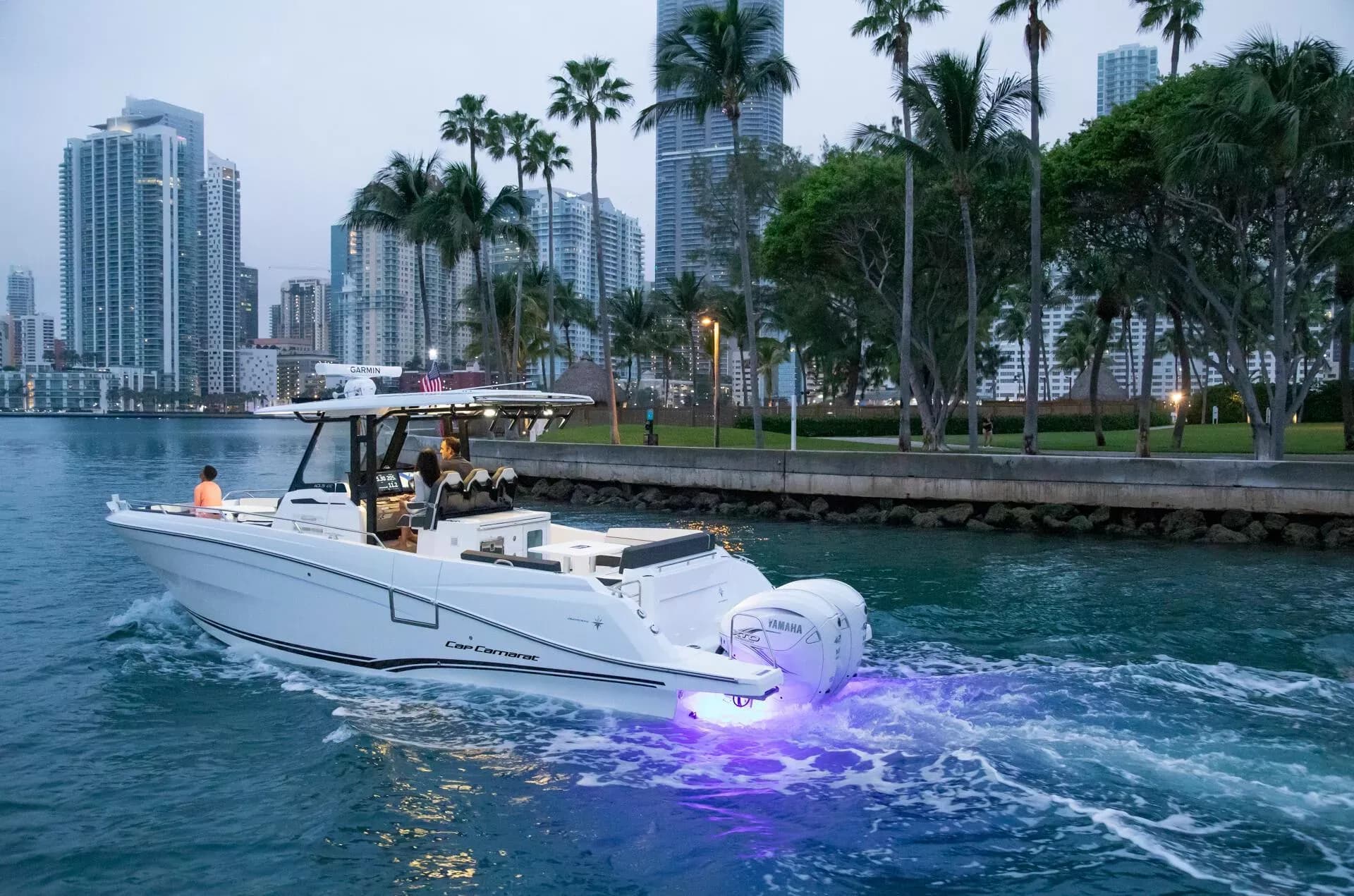 Con su casco en forma de V para una navegación muy cómoda, su potente motorización con joystick 2 x 350 CV, y su cabina ergonómica, disfruta de largas y rápidas navegaciones, bien instalado y con total seguridad.