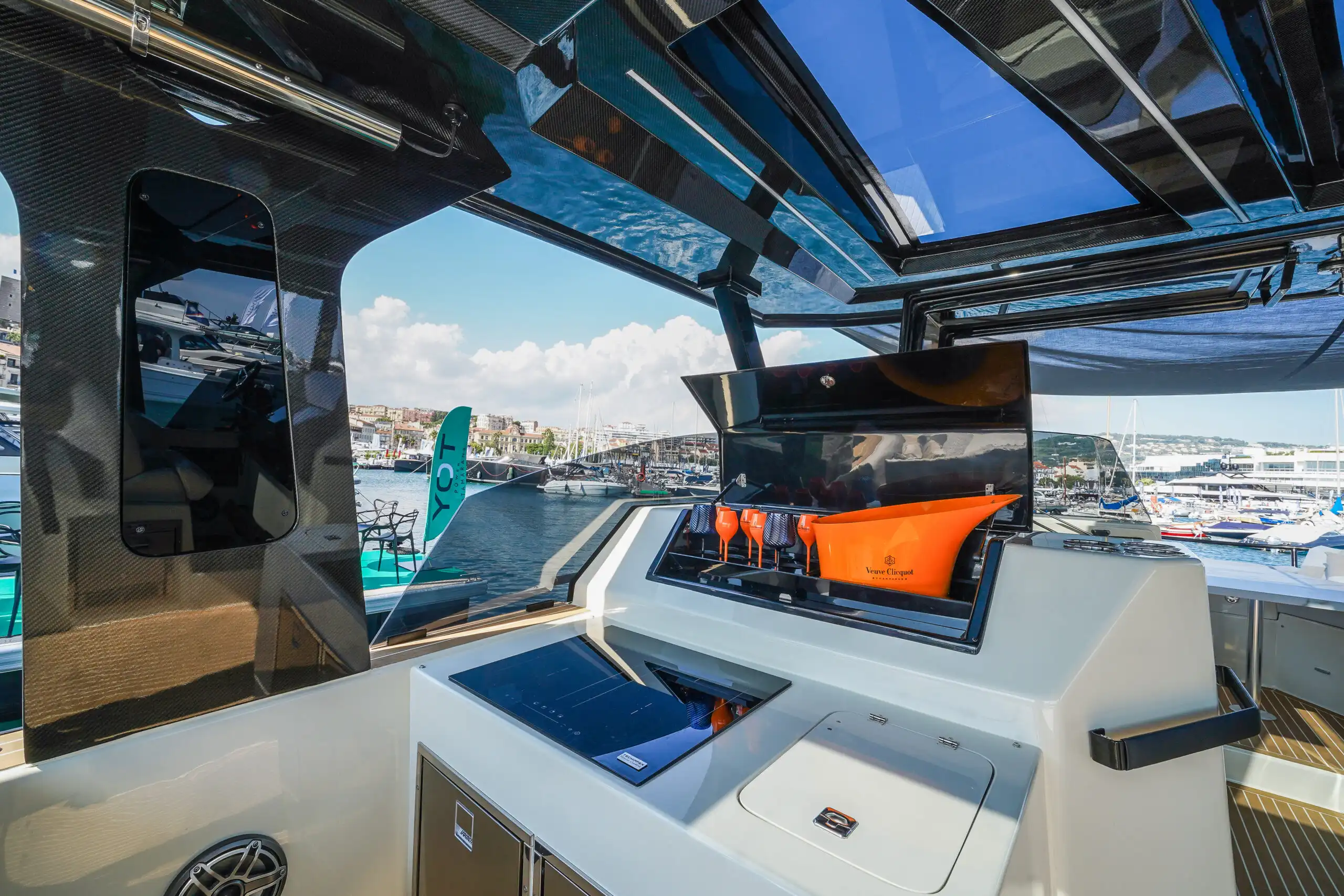 En el exterior, las amplias terrazas y zonas de estar en la popa y la proa serán las terrazas perfectas para disfrutar de un contacto privilegiado con el mar.