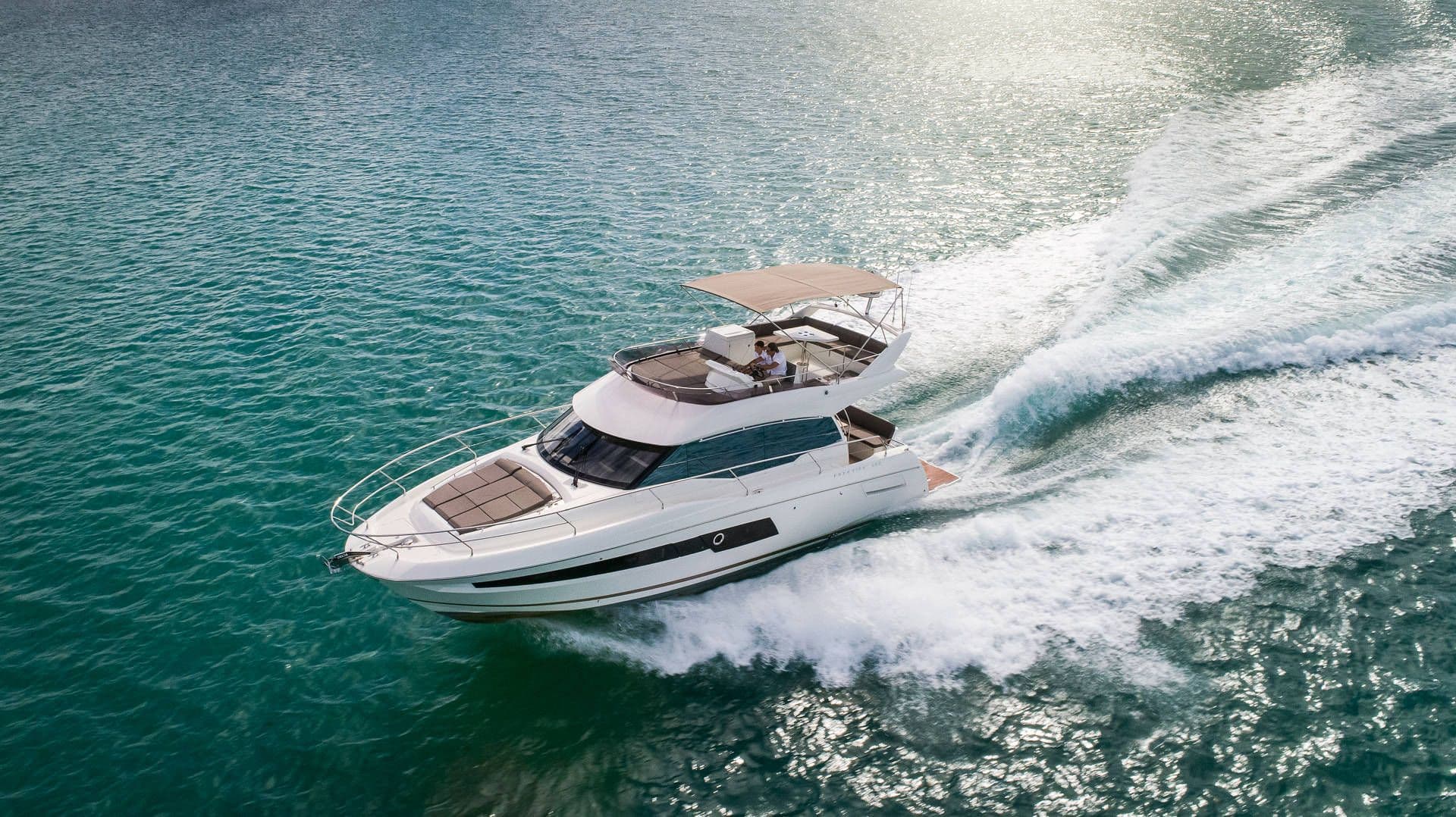 Offering a progressive V hull, with wide outside supports for exceptional stability and handling. The PRESTIGE 460 is easy to maneuver, this new model benefits from the dual VOLVO IPS 500 or IPS 600 engines, with indisputable performance. On board, everything is optimized to offer unequalled comfort and space. Combining the design of Garroni Design and signed JP Concepts, this Flybridge meets the brand's latest requirements and benefits from the Prestige Yachts DNA. Outside, she adopts the signature of the latest Prestige and displays the immense continuous and enlarged hull glazing.