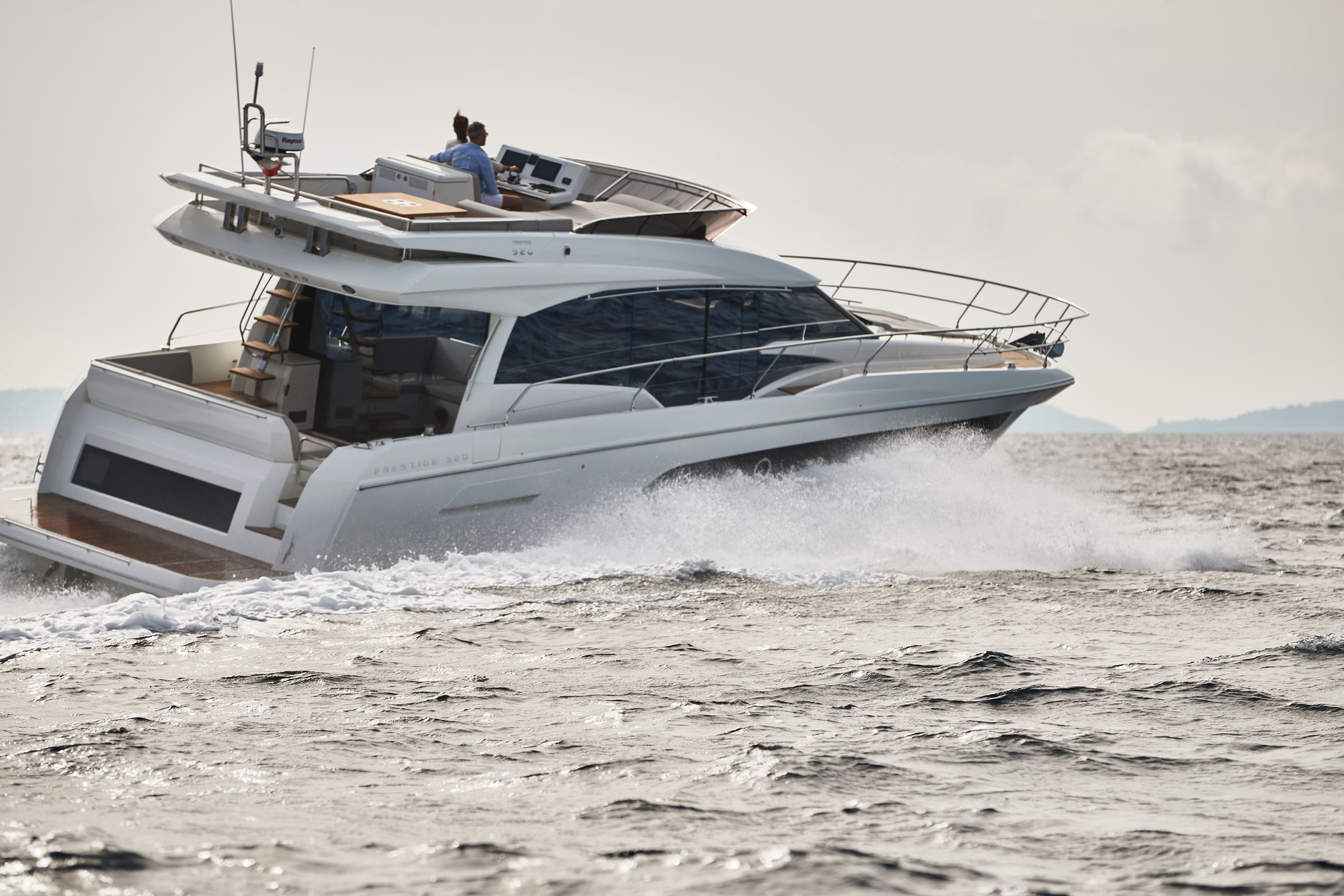 Inherited the strengths of her predecessor, the Prestige 520 is designed to favor life on board thanks to its wide side decks, flybridge and its large platform.