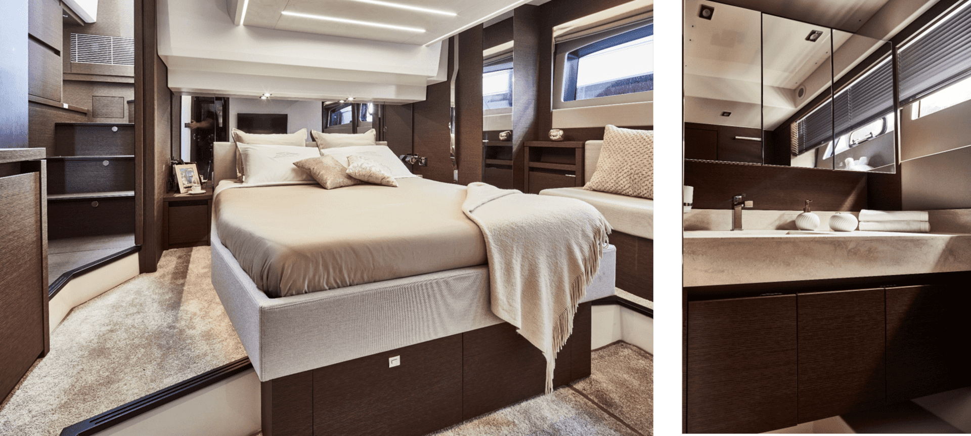 Designed for dependable high performance and excellent handling at sea. With her generous interior volume, the PRESTIGE 520 S lends herself to easy, enjoyable entertaining which inspires us to embark and set sail in search of new destinations with full comfort. Her hull shape was developped for POD propulsion IPS 600. Linked to the POD propulsion, the joystick control allows a excellent maneuverability.